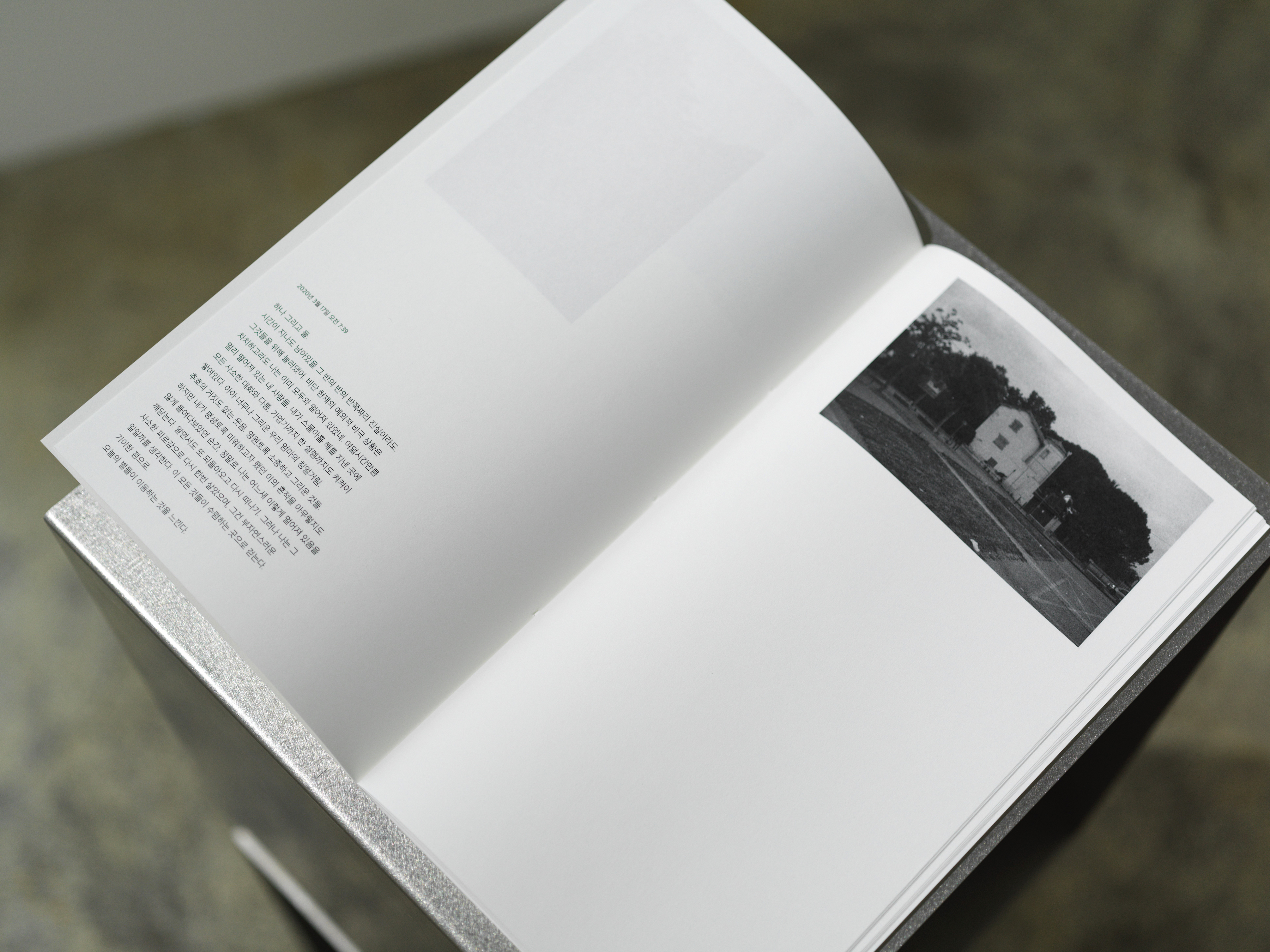 그날의 흑백 필름은 이미 사진을 찍기 전에 바닷물에 푹 담갔던 필름이었다. 당시 나는 필름에 우연적인 작용이 일어나는 사진을 찍는 것에 흥미를 느끼고 있었다. 예기치 못한 과정을 겪은 필름은 어떤 흐릿한 기억의 장면을 불러일으켰기 때문이다. 나는 희미한 이미지를 계속해서 발굴하고 있었고, 이 과정은 내게 멀어진 시간을 적셔내고 건져내 다시 들여다보는 것이었다.